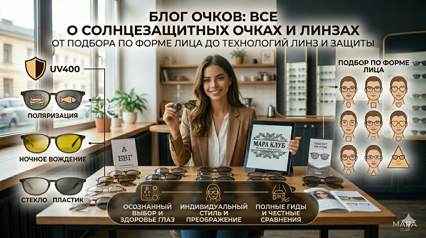 Добро пожаловать в блог интернет-магазина «Мара Клуб ОПТ»! Здесь мы делимся экспертными советами по выбору солнцезащитных очков, рассказываем о технологиях линз (поляризация, фотохромы, UV400), сравниваем материалы и помогаем подобрать идеальную оправу под форму лица. Все статьи написаны при участии оптометристов и проверены на практике.