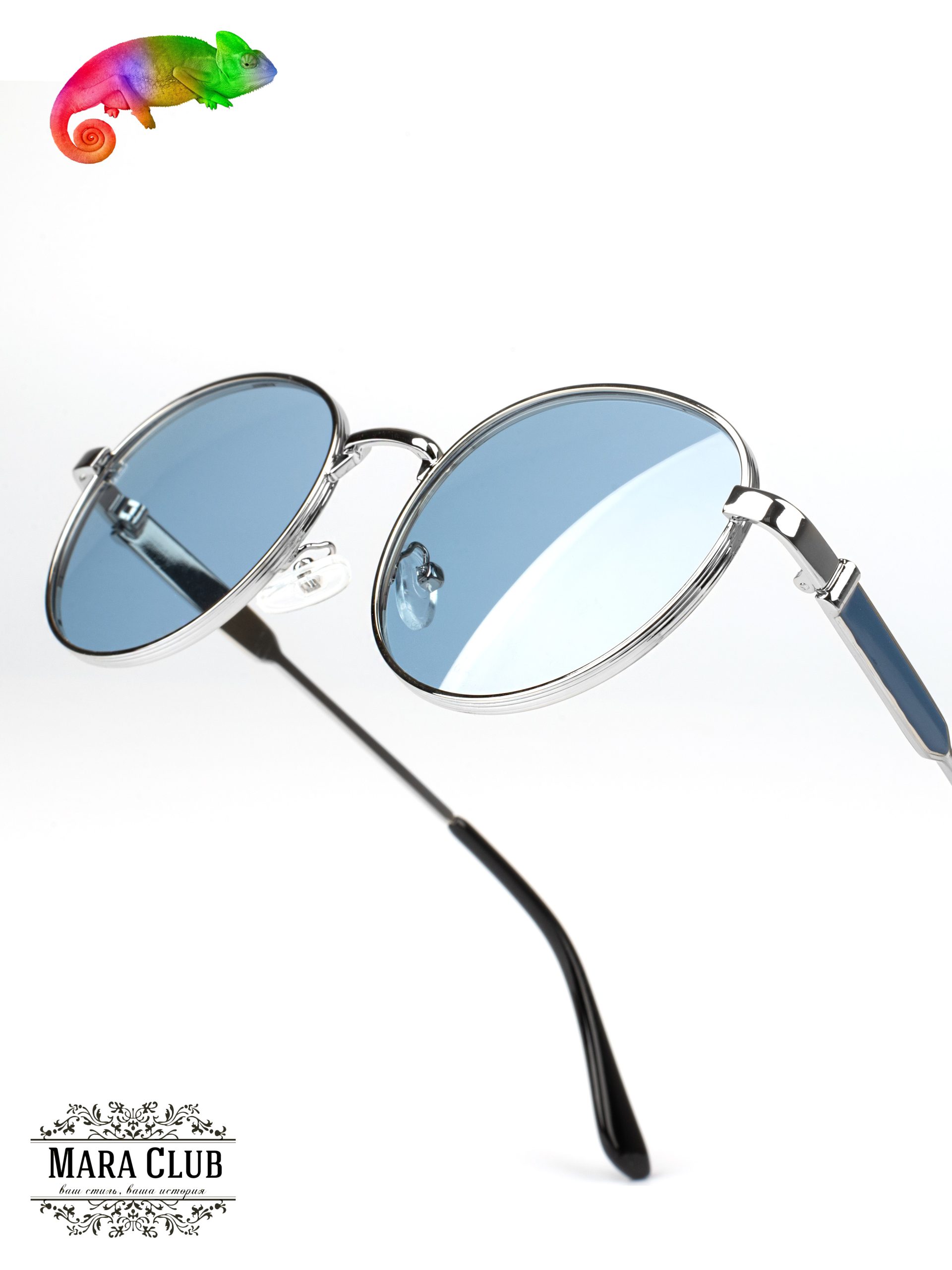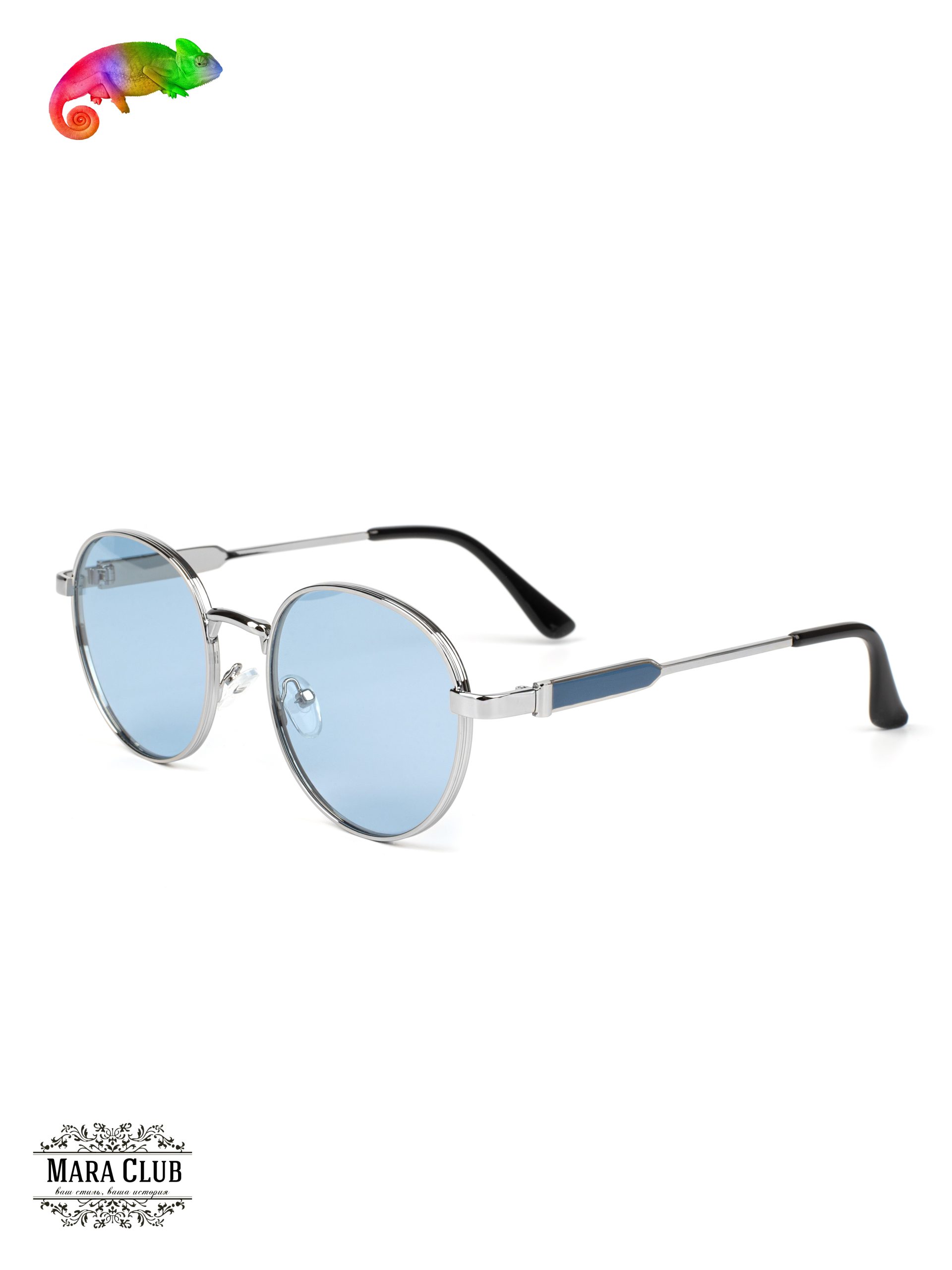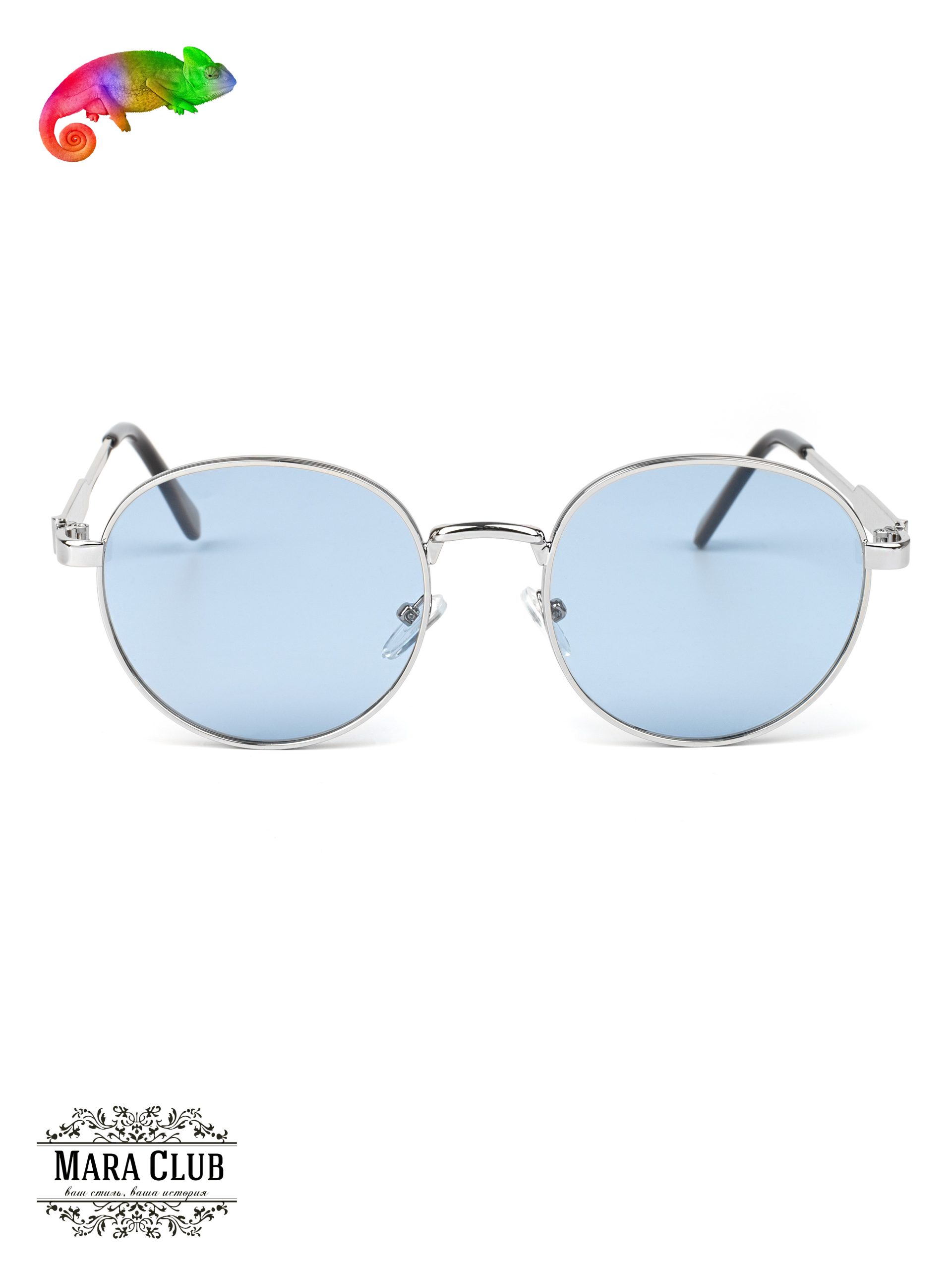 Серебристый, голубой: Длина оправы 126 мм, высота оправы 50 мм, длина моста 21 мм, длина линзы 54 мм, длина дужки 140 мм Состав: пластик, металл